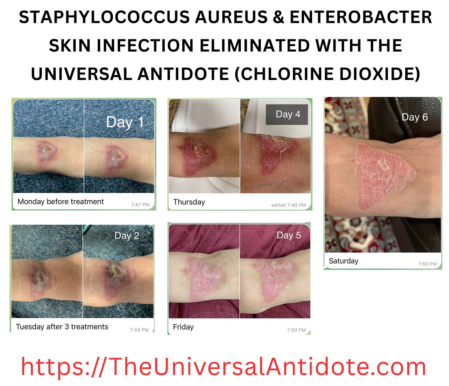 WARNING: Some of the images in this article show open wounds, and if you have a weak stomach, you have been forewarned. All of these testimonials were provided by people who used topical chlorine dioxide protocol in the treatment of a skin disease/condition, and in some cases they used multiple protocols