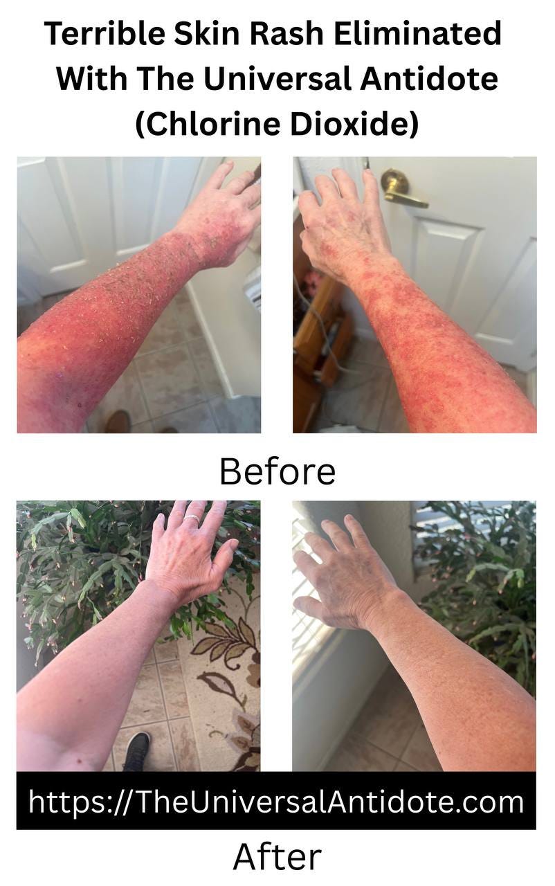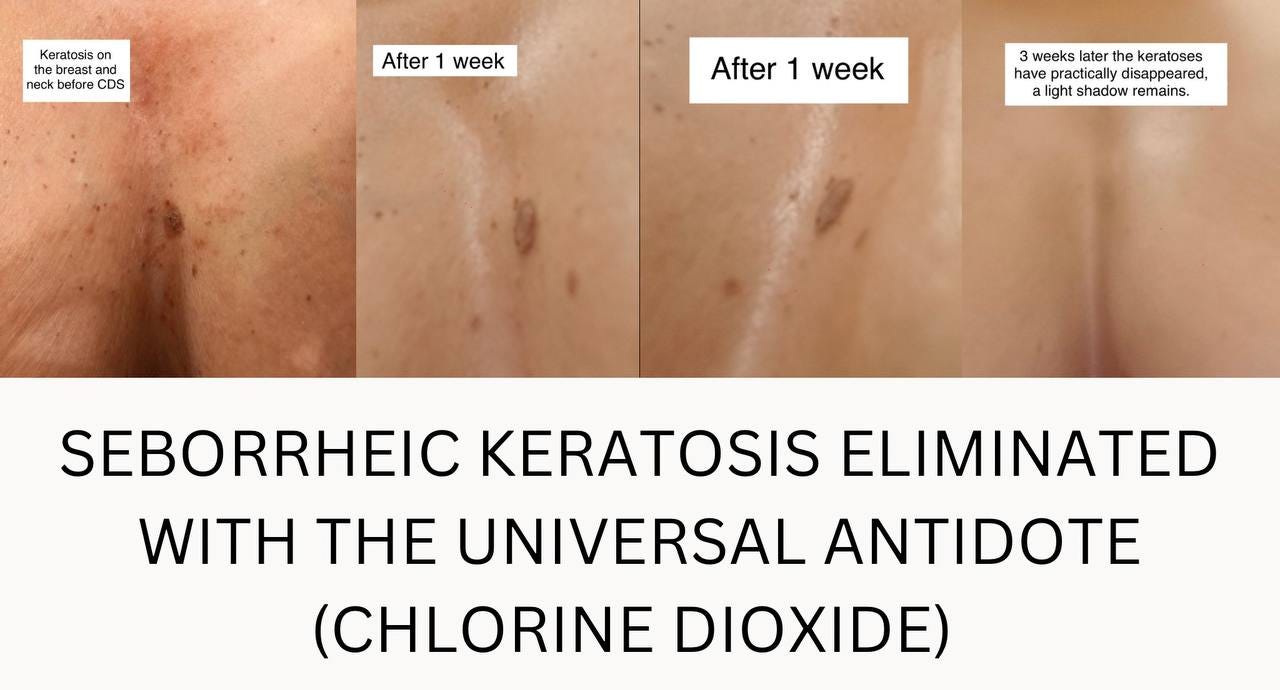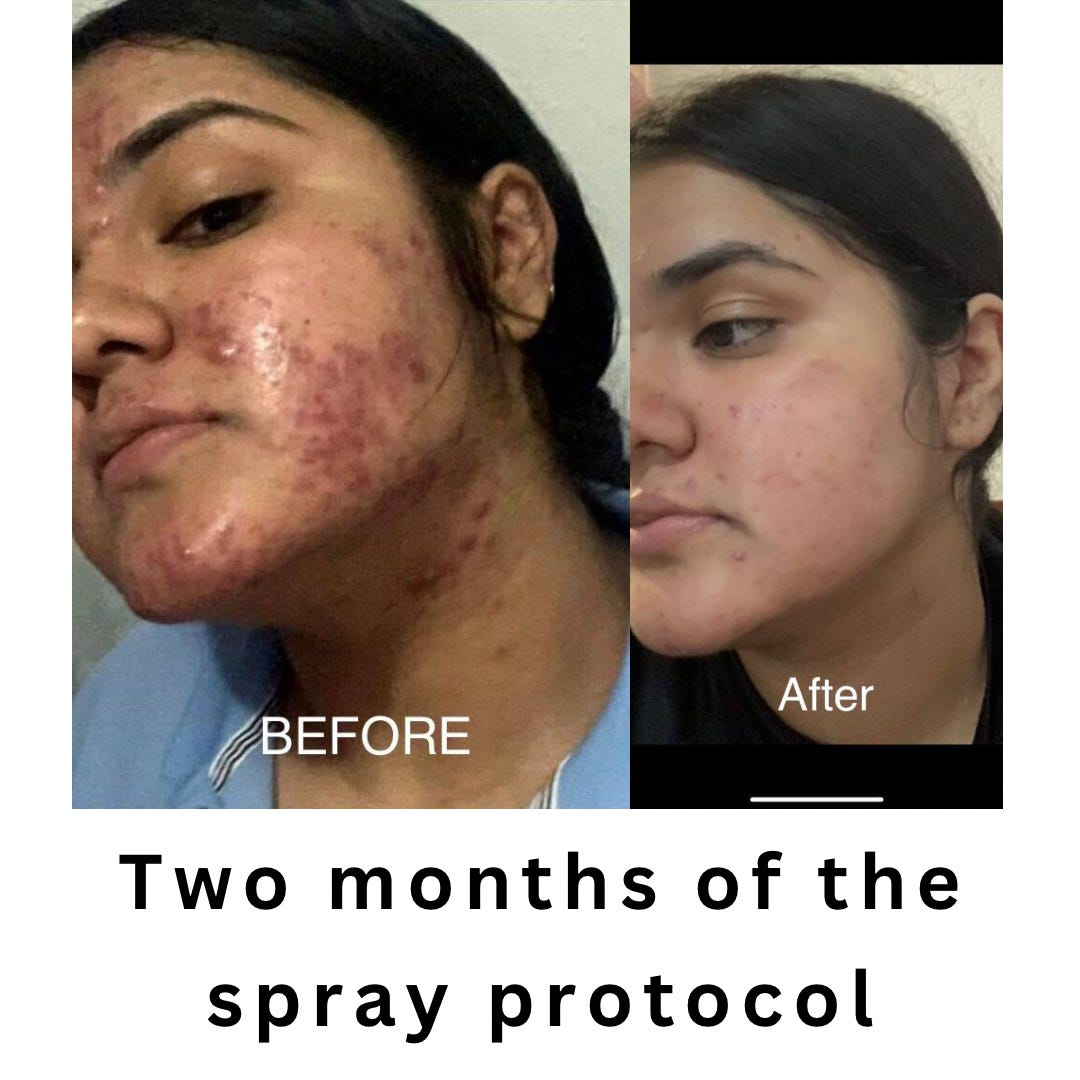 The chlorine dioxide spray protocol has proven highly effective for a variety of skin conditions, though I can’t always fully explain the mechanisms behind its success. Some conditions, like acne, are easier to understand since the mechanisms likely align with those discussed earlier in this article. Others—such as urticaria and keratosis—are less clear, yet the results remain consistent. I’ve also observed that chlorine dioxide can quickly stop reactions from poison ivy or chemical irritants on the skin. While the precise mechanisms of action for some of these effects are still uncertain, experience has shown that the spray protocol often works remarkably well, even without a complete scientific explanation. My motto is, “My motto is “it sure can't hurt to try it.”