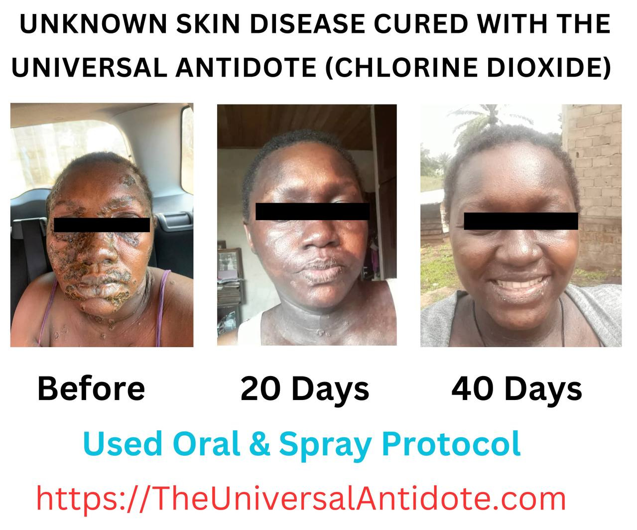 “This is how his skin improved in less than 2 months of applying Chlorine Dioxide with spray, (she didn’t even take it). She left the treatment of her Dermatologist.”